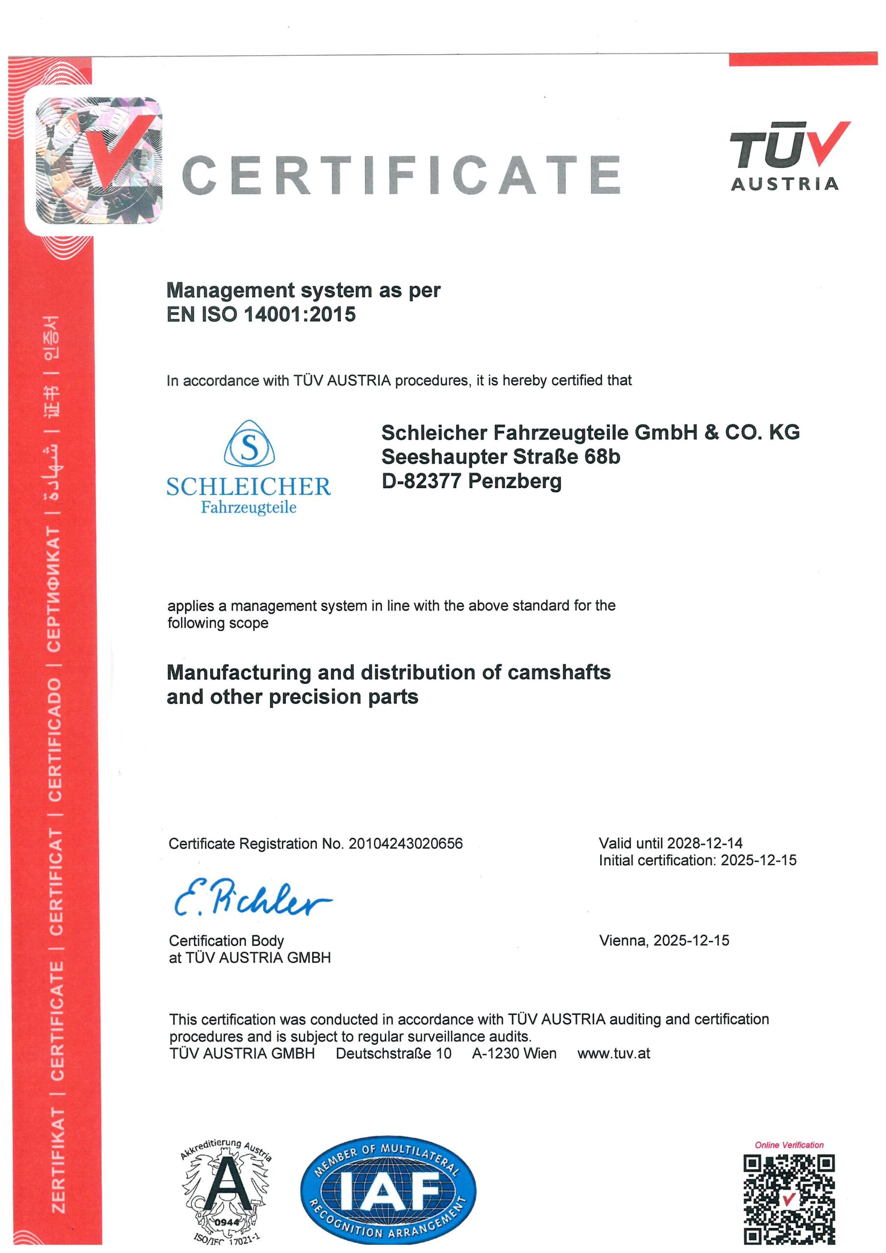A summary of our current valid certifications and awards: